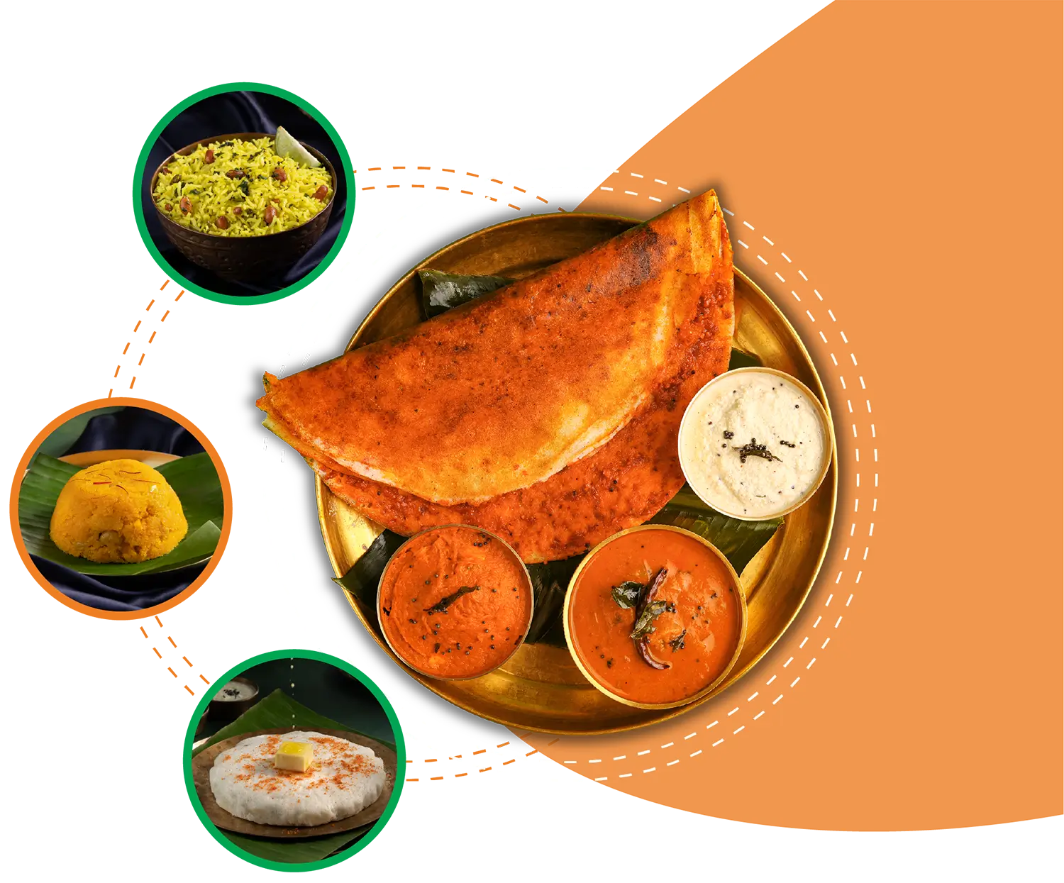 A venture of BrewBakes Hospitality & Sons Pvt. Ltd. brings the vibrant flavors of South India to your plate, with a focus on both taste and health. Our menu features an array of authentic, mostly gluten-free South Indian dishes, crafted with care to offer you a delicious and wholesome dining experience.